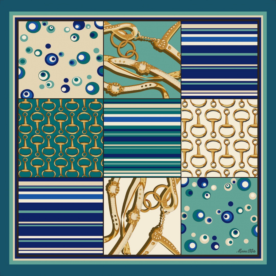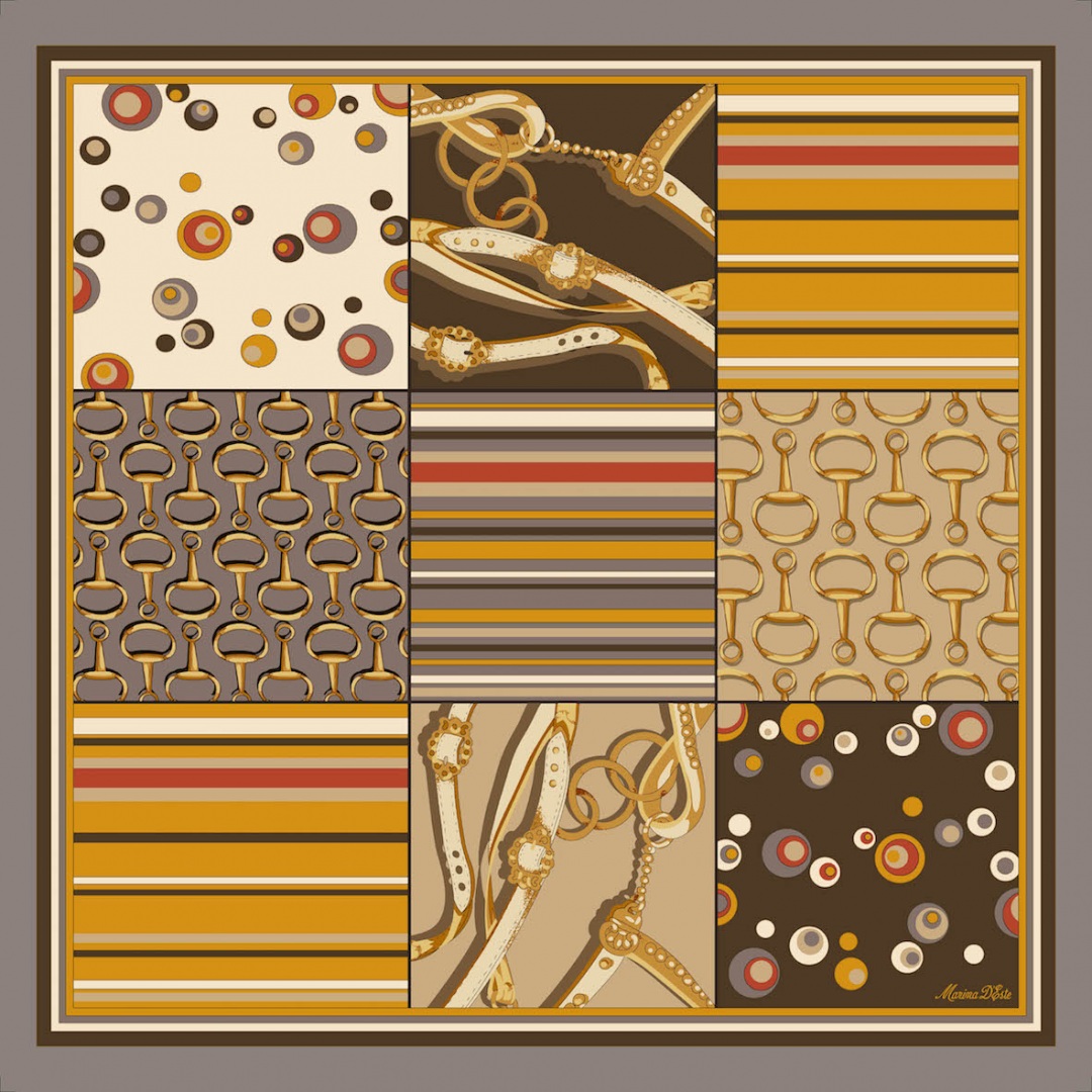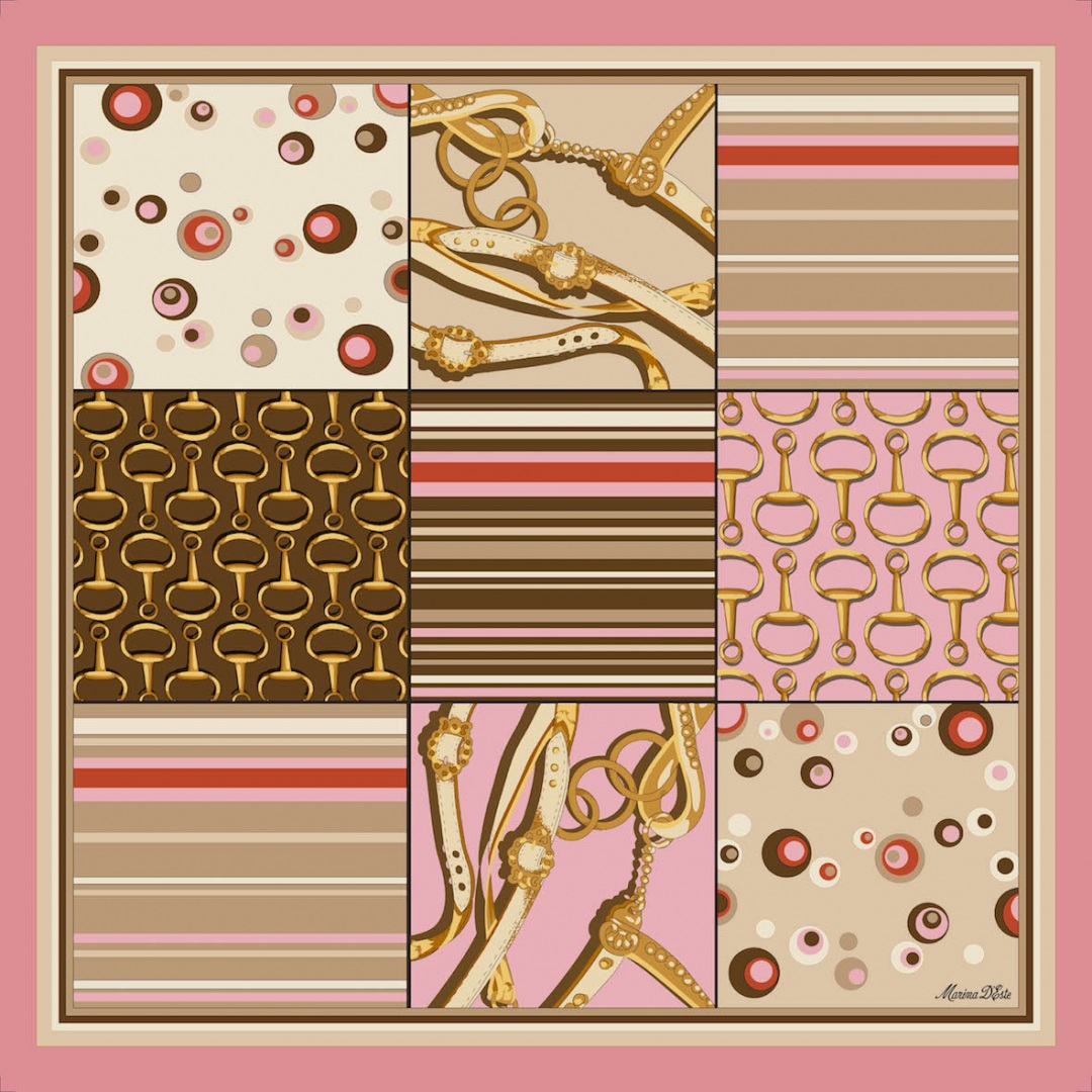 Un carrè in cui 3 file con 3 simboli dell’eleganza si posizionano ordinati in una composizione di colori e combinazioni. Da indossare ogni giorno per un tocco di classe