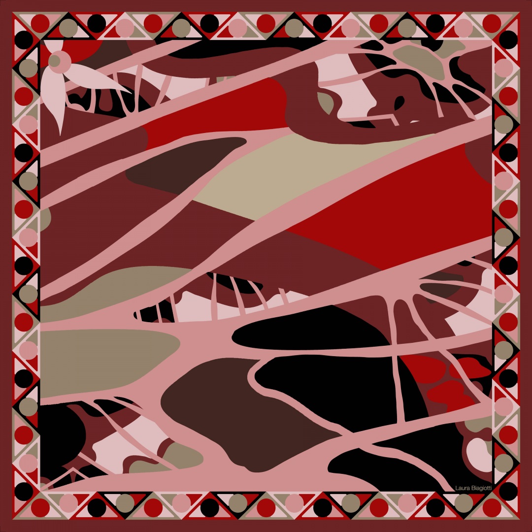 Sinuous waves create spaces for elegant color, a Greek key encapsulates this vibrant, geometric beauty.