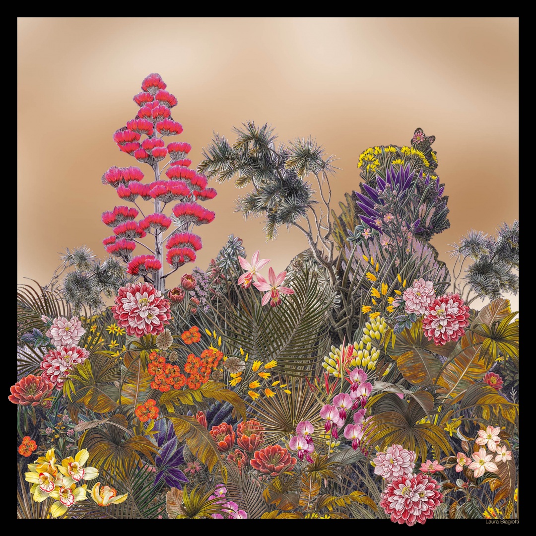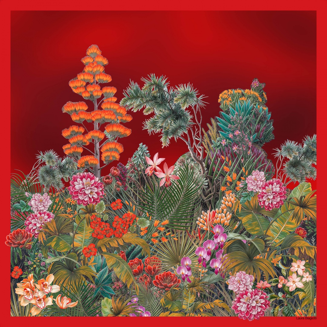 A work of art, the flora that enchants with its variety and colors in an enchanting shawl in georgette silk