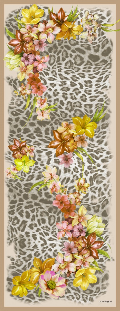 A wild and bold touch meets the grace of flowers and the softness of silk georgette in this animal print solution, a must-have fashion accessory.