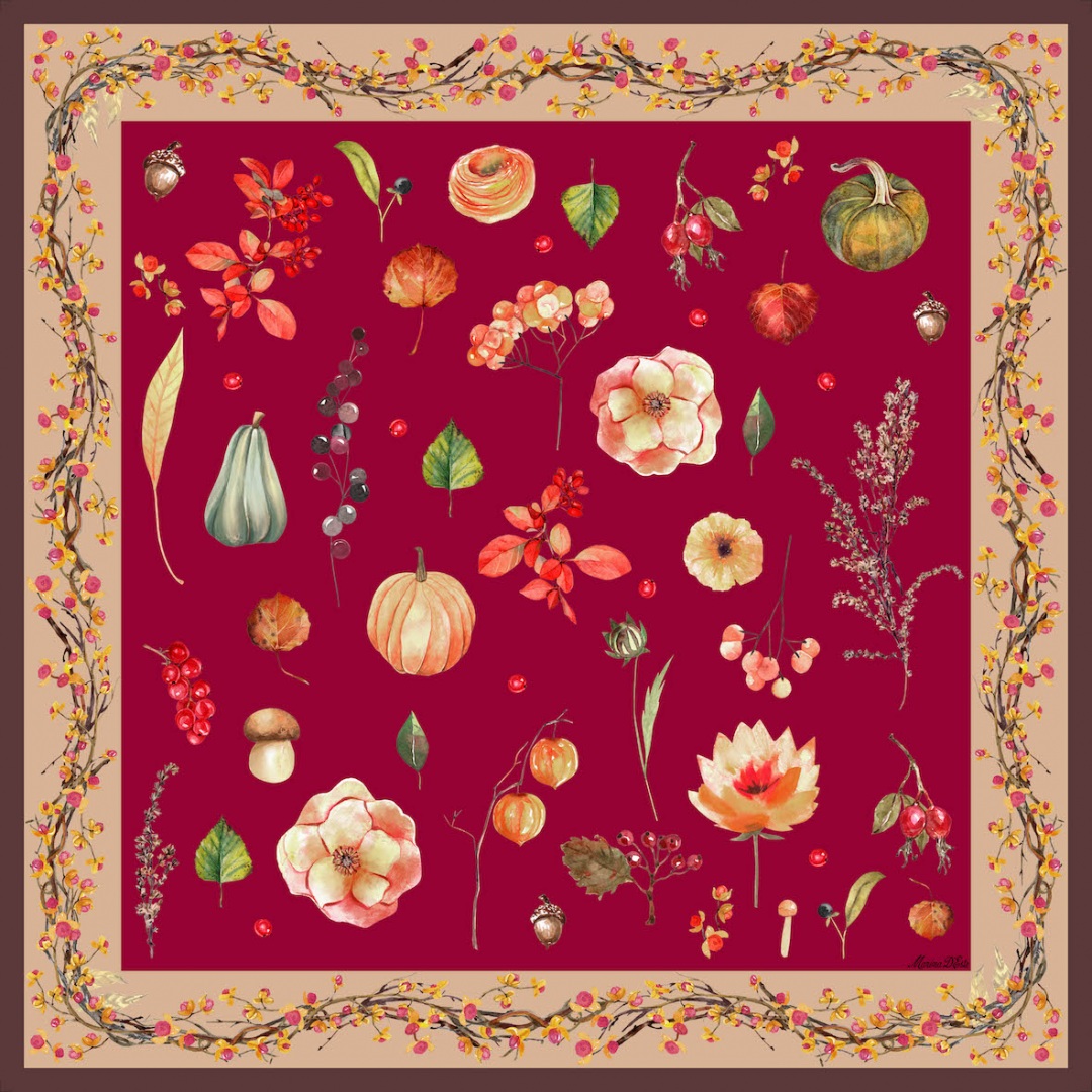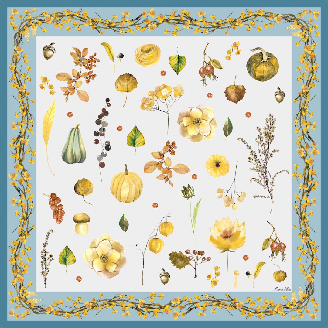 Fiori e foglie racchiusi da una deliziosa cornice si stagliano con chiarezza e riempiono lo spazio colorato aggiungendo note delicate e colori raffinati, questa è botanica delicata da indossare.