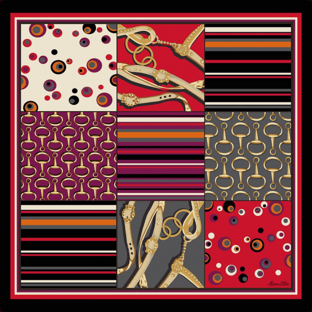 Un carrè in cui 3 file con 3 simboli dell’eleganza si posizionano ordinati in una composizione di colori e combinazioni. Da indossare ogni giorno per un tocco di classe