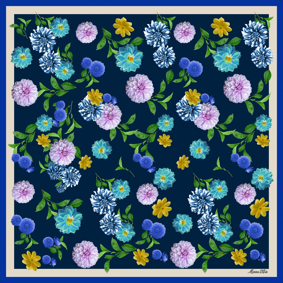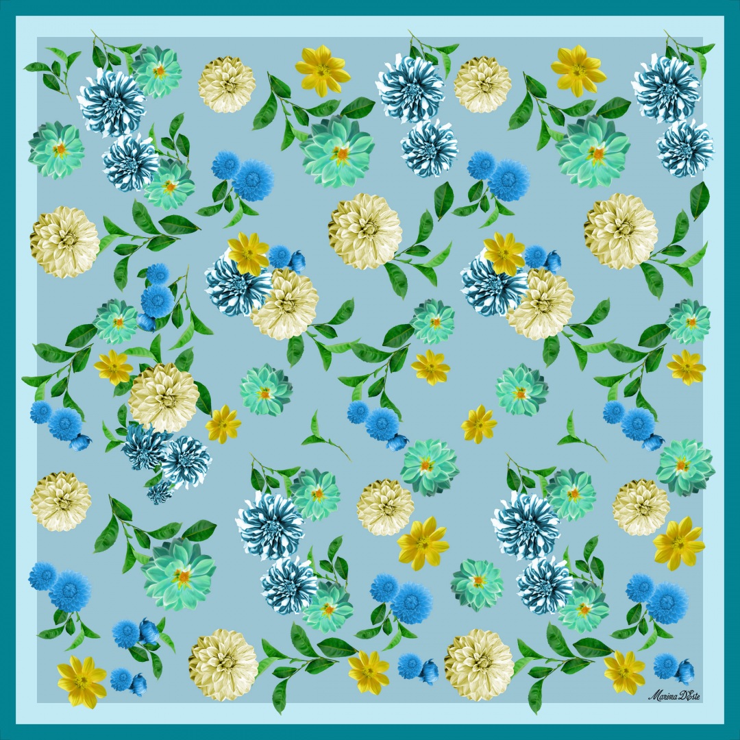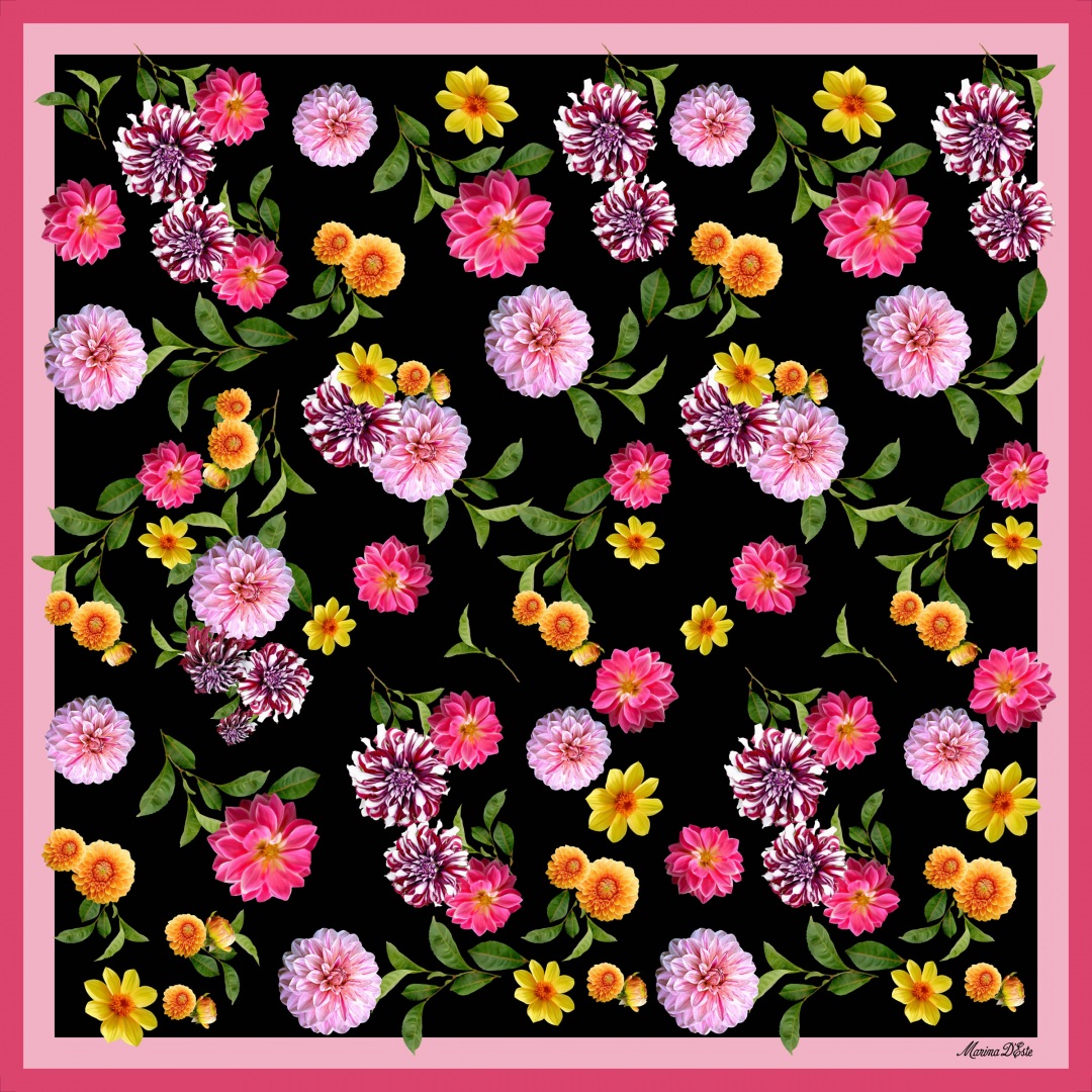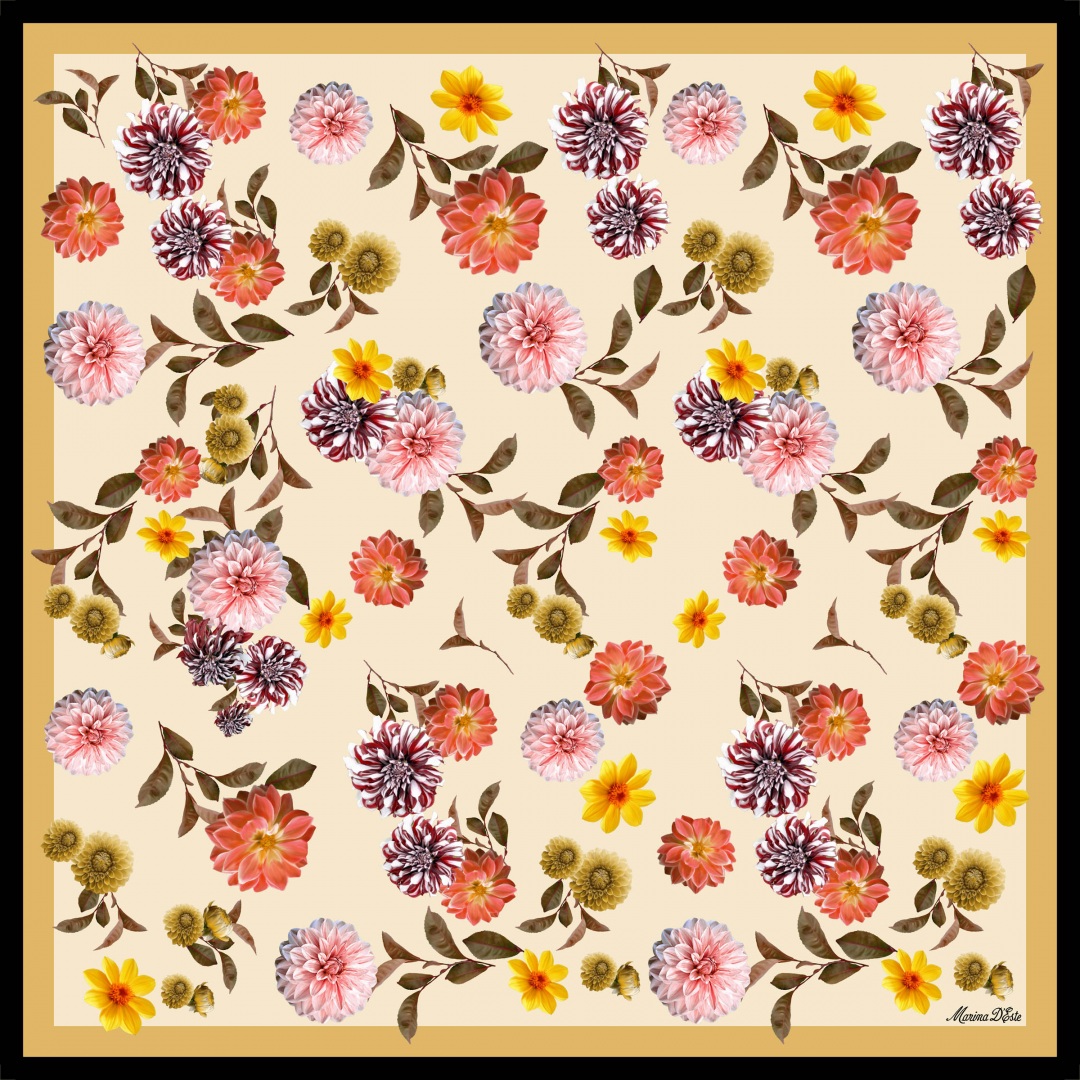 Nel linguaggio dei fiori il tagete simboleggia protezione, amore eterno, felicità e prosperità, ed ecco tanti piccoli tageti danzare briosamente su fondi di colore pieno. Vivace e bello.