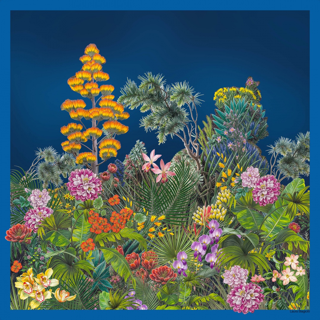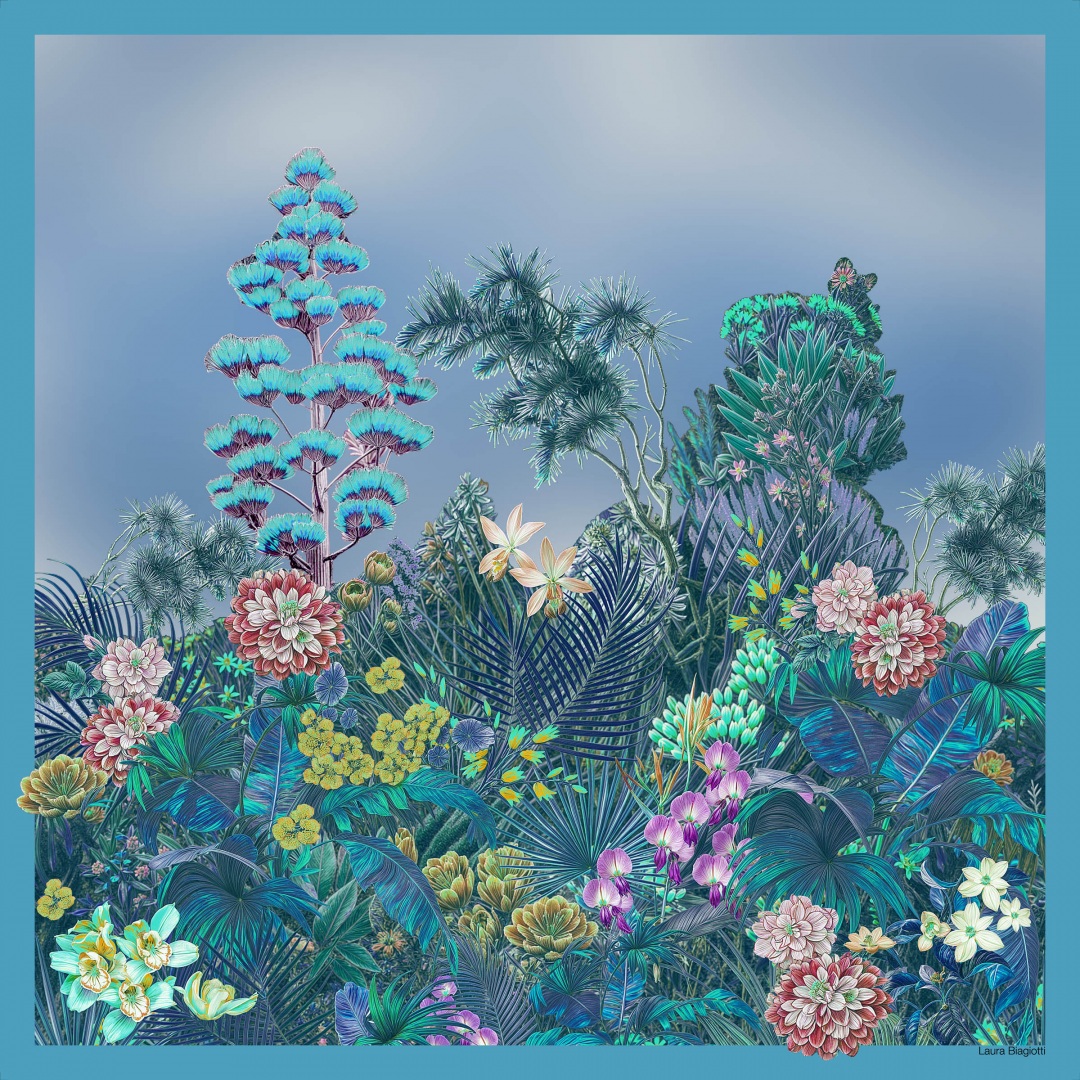Un’opera d’arte, la flora che incanta con la sua varietà e i suoi colori in uno scialle incantevole in seta georgette