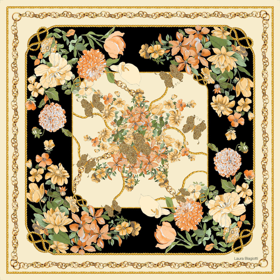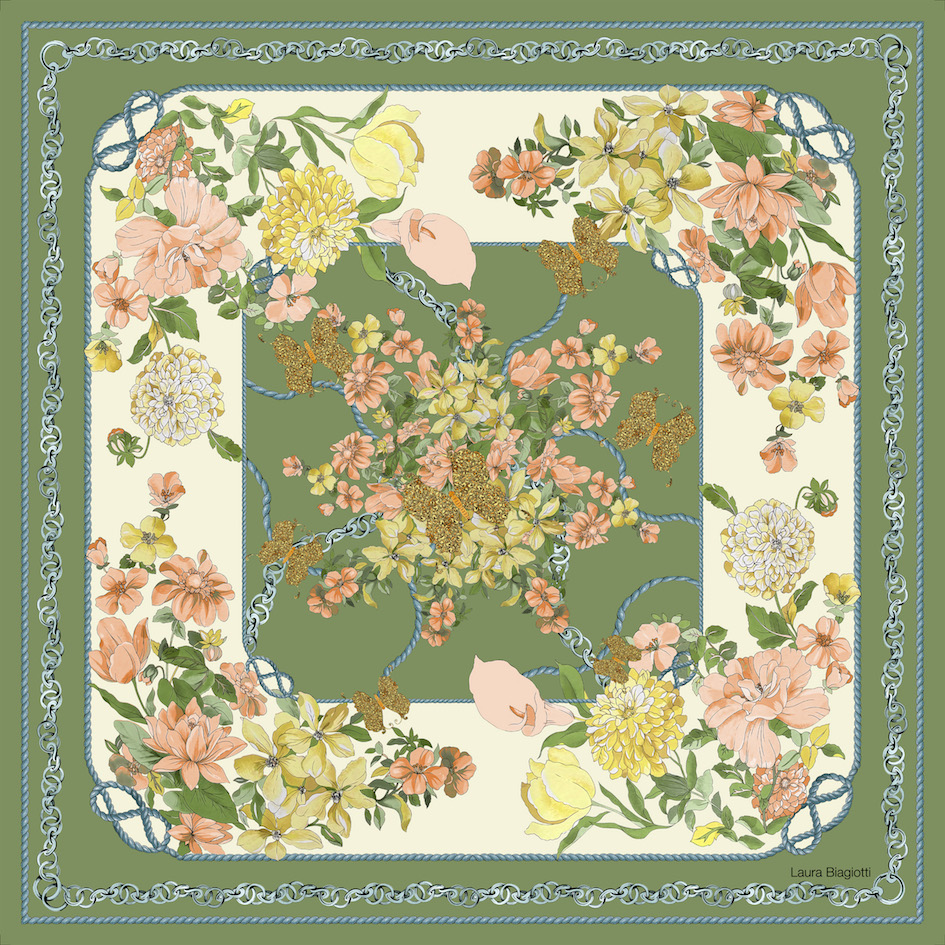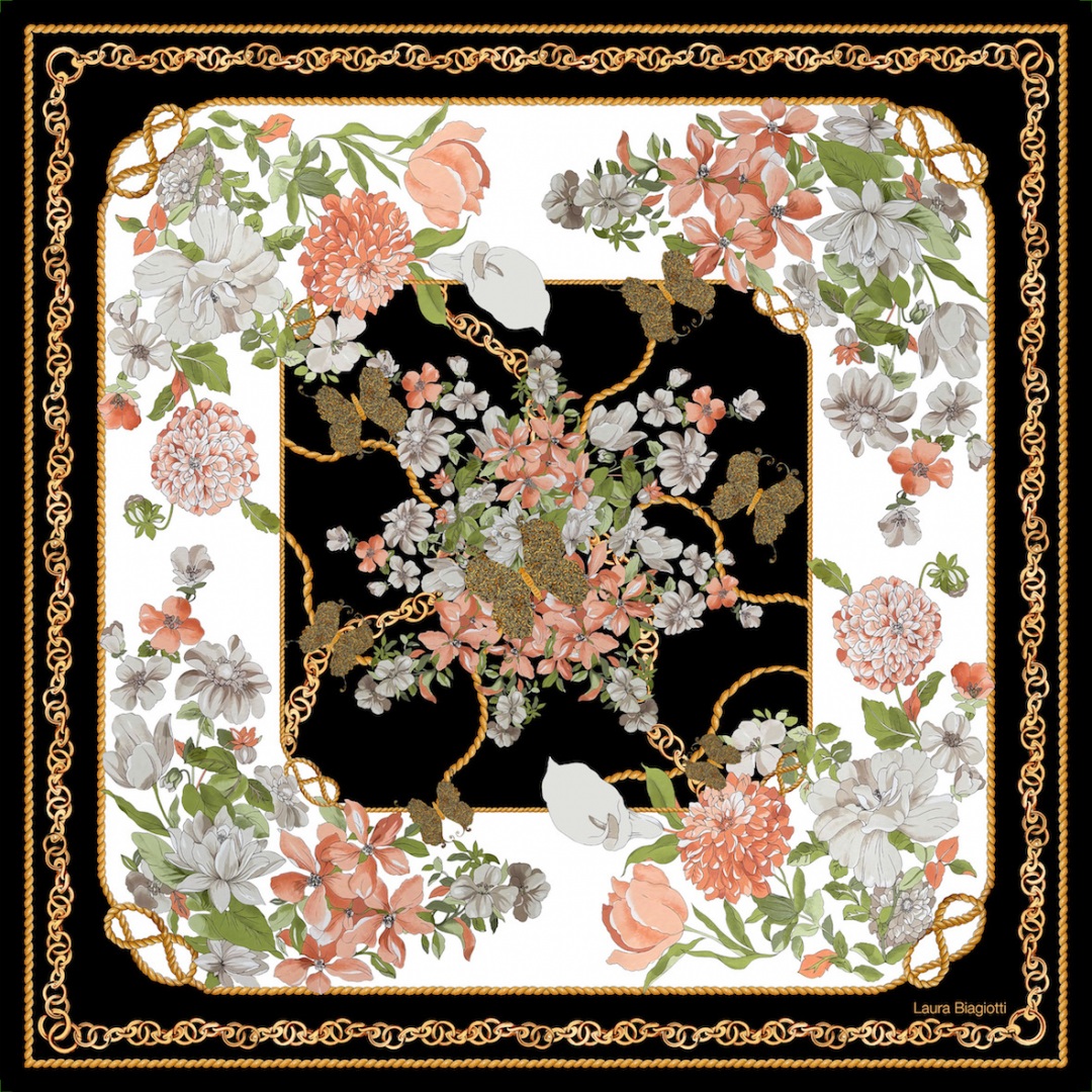 Fiori collegati da corde naturali, un gioco di movimento e compostezza contenuto in una cornice tra gioiello e semplicità.