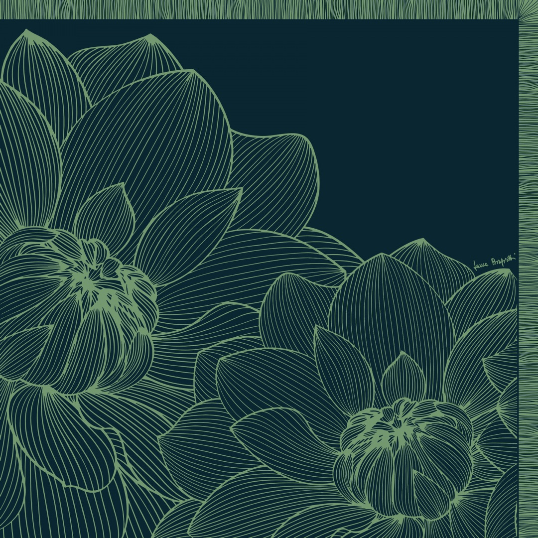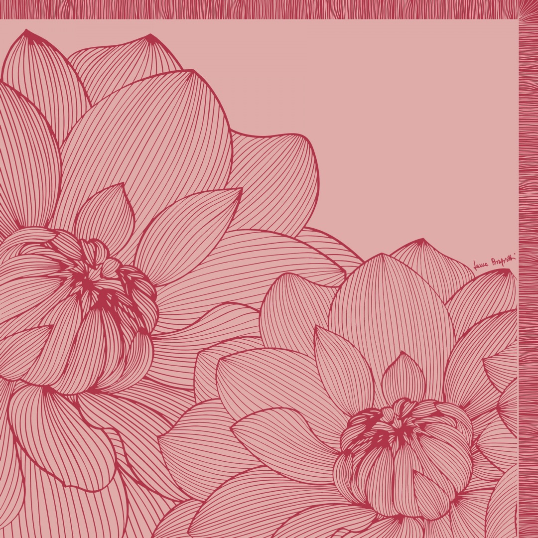 Movement of the stroke that lightens the weight of its content and fullness of what is the background and holds up the world. A simple asymmetrical frame is born from the sinuous lines of dancing dahlias. Wow effect and elegant