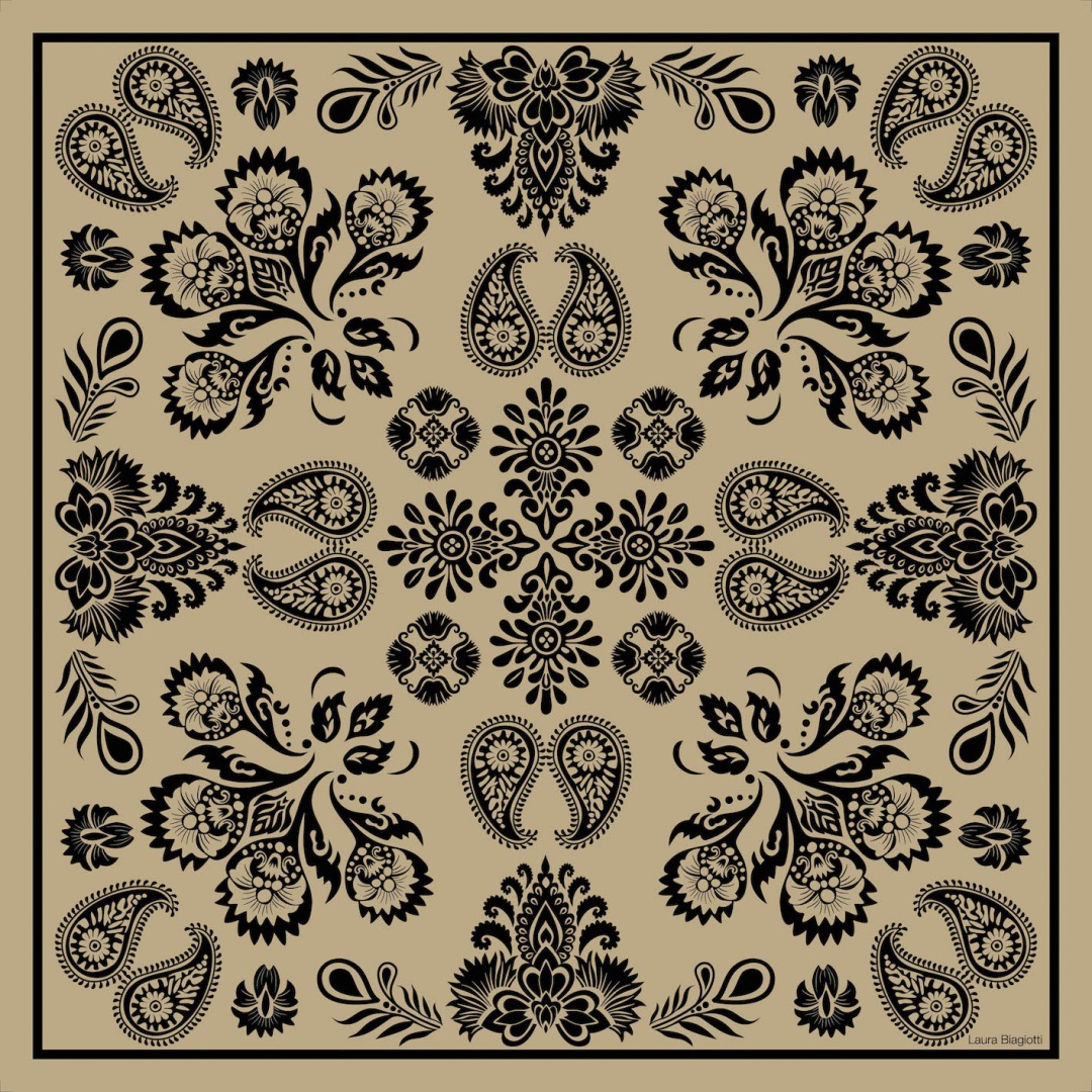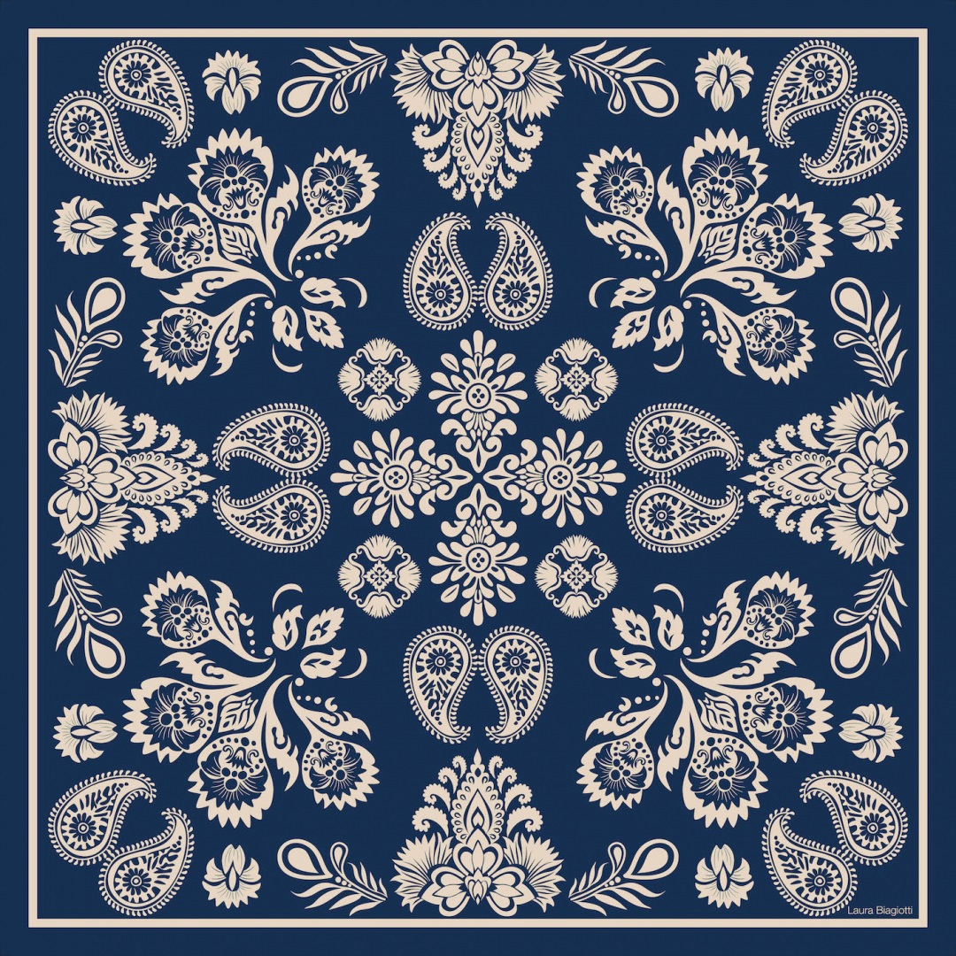 Simple in its originality, paisley drops and Corinthian flowers, colors that convey preciousness, simplicity, and beauty on silk.
