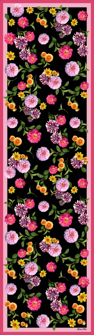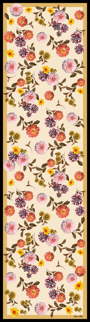 In the language of flowers, marigolds symbolize protection, eternal love, happiness, and prosperity, and here are many small marigolds dancing lively against a background of rich color. Vibrant and beautiful.