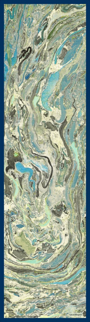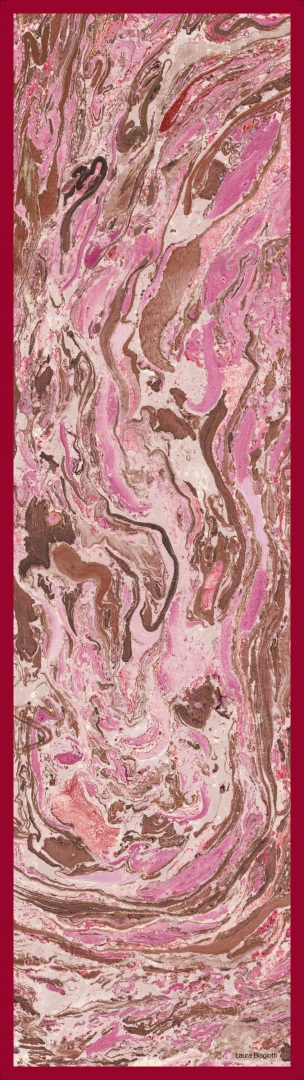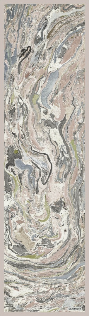 A swirl of colors recalls precious marbled slabs. Authentic, dense, exciting, and classy.